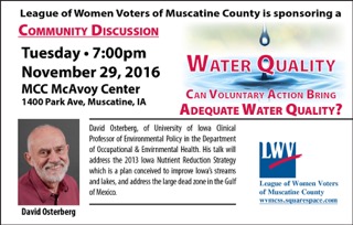 David Osterberg will speak about Iowa's at 7 p.m. on November 29, 2016 Muscatine County Community College’s McAvoy Center 1400 block of Park Avenue.
